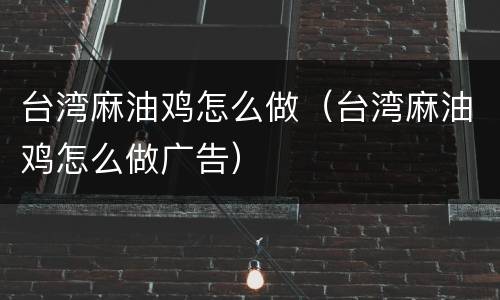 台湾麻油鸡怎么做(台湾麻油鸡怎么做广告)
