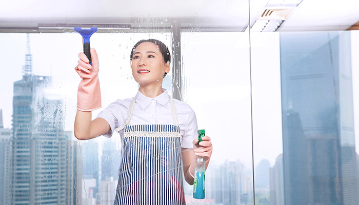 第三步、用提前准备的抹布擦干净玻璃上的灰尘;