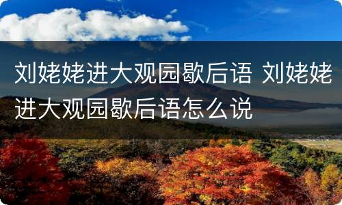 刘姥姥进大观园歇后语 刘姥姥进大观园歇后语怎么说