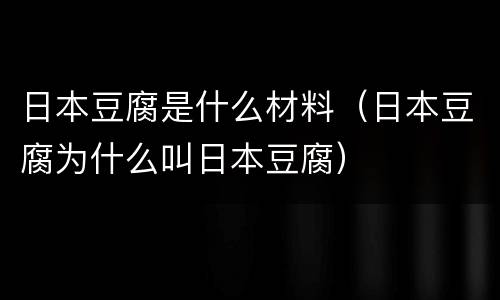 日本豆腐是什么材料(日本豆腐为什么叫日本豆腐)
