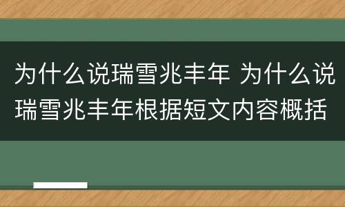 为什么说瑞雪兆丰年 为什么说瑞雪兆丰年根据短文内容概括