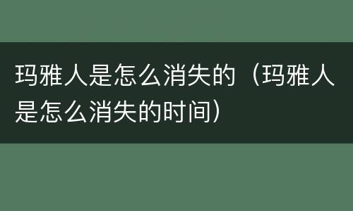 玛雅人是怎么消失的(玛雅人是怎么消失的时间)