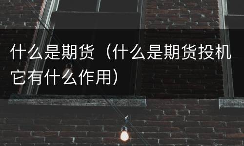 期货可以是某种商品,也可以是金融工具。交收期货的日子可以是一星期之后,一个月之后,甚至一年之后,投资者可以对期货进行投资或投机。