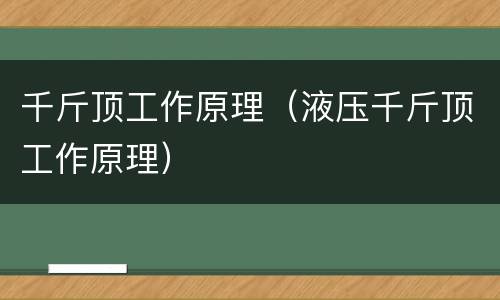 千斤顶工作原理(液压千斤顶工作原理)