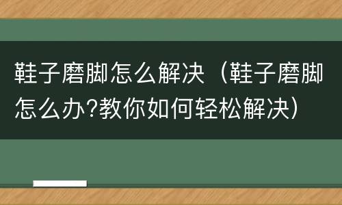 鞋子磨脚怎么解决(鞋子磨脚怎么办?教你如何轻松解决)