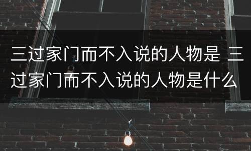 三过家门而不入说的人物是大禹。为了治水,大禹曾三过家门而不敢入。大禹三过家门而不入,被传为美谈,至今仍为人们所传颂。