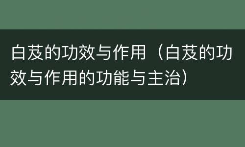白芨的功效与作用(白芨的功效与作用的功能与主治)
