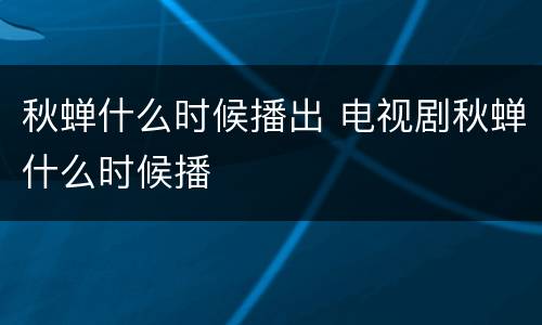 秋蝉什么时候播出 电视剧秋蝉什么时候播