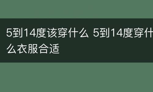 5到14度应该穿棉服、毛衣、羽绒服、抓绒衣、羊毛羔外套等衣物了,下半身可以穿加绒的牛仔长裤、休闲裤、或者是打底裤等。最好是里面穿上毛衣或者是保暖内衣打底衫等衣物,再套上棉服羽绒度或者是呢子大衣。