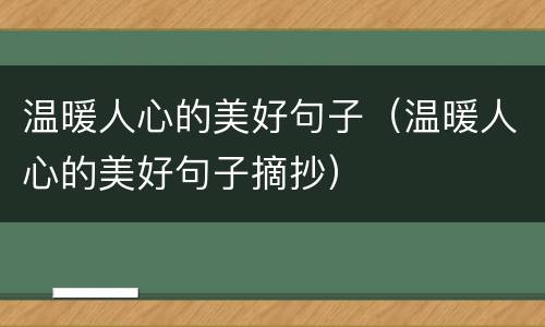 温暖人心的美好句子(温暖人心的美好句子摘抄)