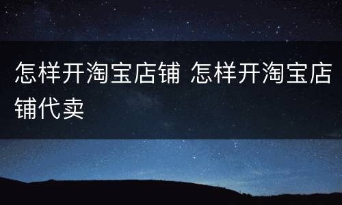 怎样开淘宝店铺 怎样开淘宝店铺代卖