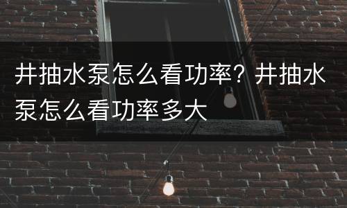 井抽水泵怎么看功率? 井抽水泵怎么看功率多大