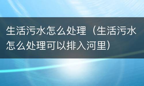 生活污水怎么处理(生活污水怎么处理可以排入河里)