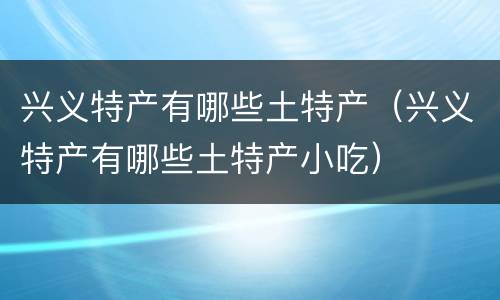 兴义特产有哪些土特产(兴义特产有哪些土特产小吃)